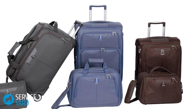Importante! Pero al comprar, preste atención al material, los modelos de poliester, nylon o poliamida impregnada con una mezcla especial impermeable. Tales maletas no temen a la humedad, son fáciles de limpiar y no son caprichosas al salir.