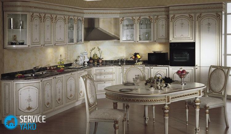 Los clásicos siempre siguen siendo relevantes, pero tal decisión costará mucho, porque los materiales naturales se utilizan en este estilo. Tales cocinas son a menudo enormes y adecuadas para habitaciones espaciosas con grandes ventanales y techos altos.