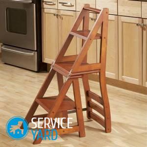 En primer lugar, es muy importante observar su tamaño cuando se ensambla. Debe ir al vestidor o al armario. O ajuste su tamaño (ancho y alto) para poder retirarlo del armario, si no hay lugares especiales para el almacenamiento en el apartamento. En segundo lugar, la escalera de tijera debe ser estable. Por lo tanto, nos fijamos en el diseño.