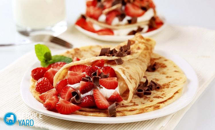 - Rellenamos panqueques con una mezcla jugosa de bayas, envuélvelos con un sobre o en un tubo, ¡como quieras!