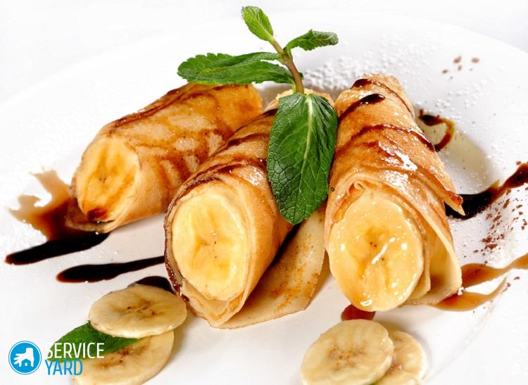 - Rellenamos el relleno de plátano con finos panqueques dulces.