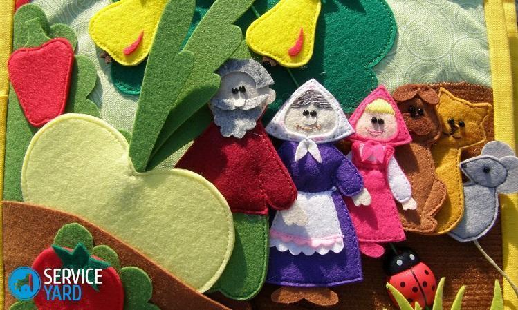 - De fieltro, puedes hacer un libro de desarrollo. ¡A los niños les encanta! Para hacer esto, en hojas de fieltro, debe pegar figuras, números, animales, un arco iris, una máquina de escribir, otros elementos. Para agregar todo esto, por ejemplo, con una cremallera, botones, cordones. ¡Este libro desarrolla perfectamente las habilidades motoras de las manos de los niños!