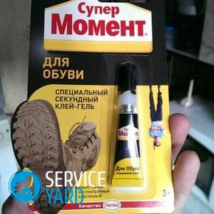 - Factor de calidad, durabilidad del encolado. Si planea llevar este par al final de la temporada, puede usar una composición económica y fácil de usar. Si los zapatos, en general, todavía no están mal, puede usar la composición adhesiva, que restaurará la integridad del material por un año o dos.
