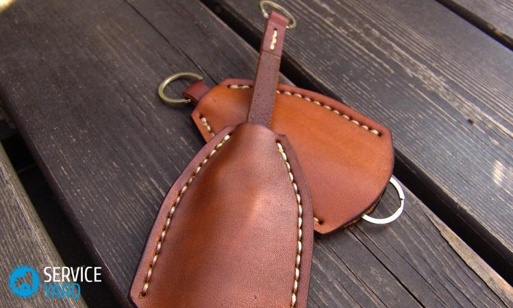 - Para sujetar las llaves del estuche, corte una tira larga y estrecha de cuero de la piel. Coser uno de sus extremos a una de las esquinas inferiores de la clavícula.
