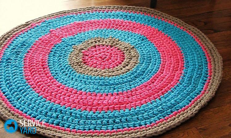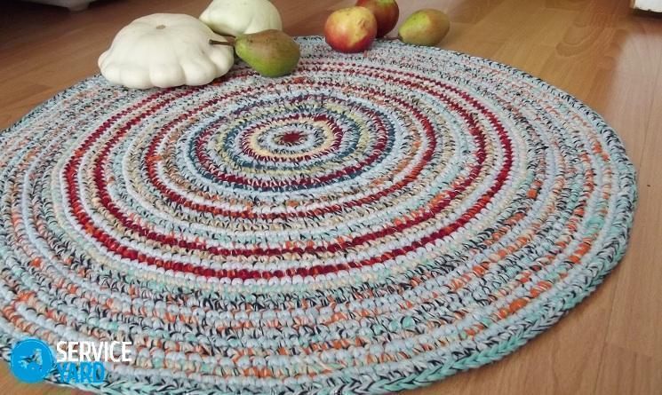 al contenido ↑Importante! Para tal alfombra, no solo es adecuado el hilo de punto, sino también los adornos de tela de algodón.