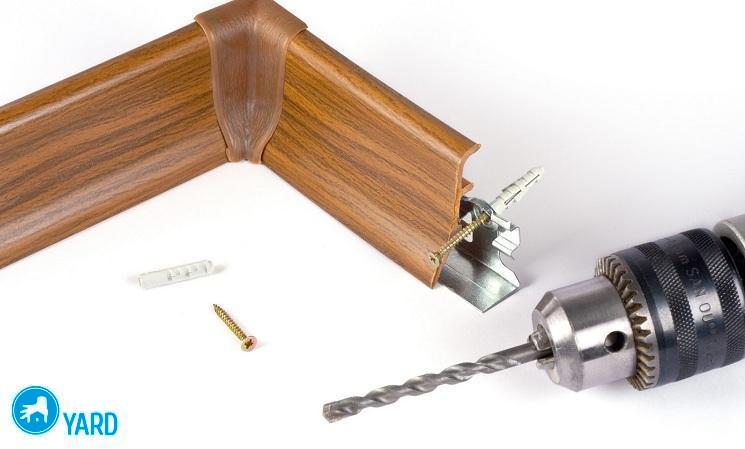 La fijación del zócalo al panel de yeso a menudo se realiza mediante sujetadores especiales, que generalmente se venden como un conjunto. Los clips se utilizan para unir el elemento decorativo, por lo que la fijación se oculta. La distancia entre los sujetadores es de 300-500 mm. Los tornillos se insertan dentro del orificio y los tapones especiales los cubren desde arriba.