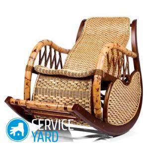 - Una enredadera es un material muy extendido para los muebles de la cabaña de verano, incluida una mecedora;