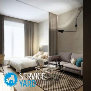 - La cama y el sofá en una habitación encajarán en el diseño con zonificación con muebles. El armario corredizo es una solución simple y económica para una habitación pequeña. Es importante colocar los muebles para que el acceso a la luz y la circulación del aire sea posible.