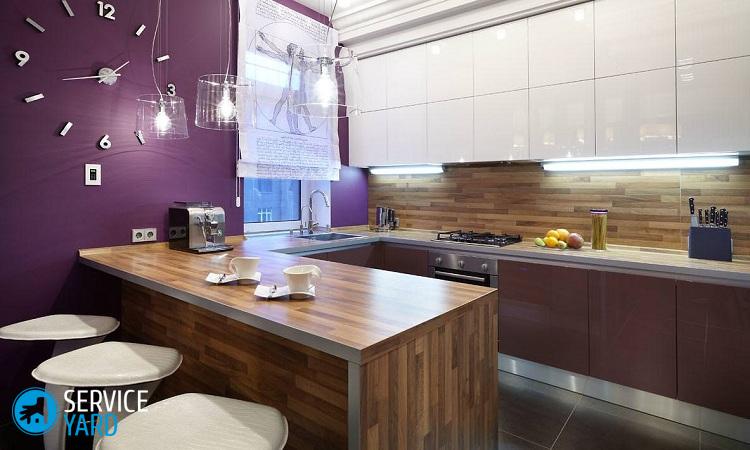 al contenido ↑Importante! Dado que el mostrador de la cocina no se encuentra a menudo en las cocinas, especialmente en las pequeñas, ya es su decoración principal.Por lo tanto, puede mejorar aún más el efecto utilizando colores contrastantes en la decoración.