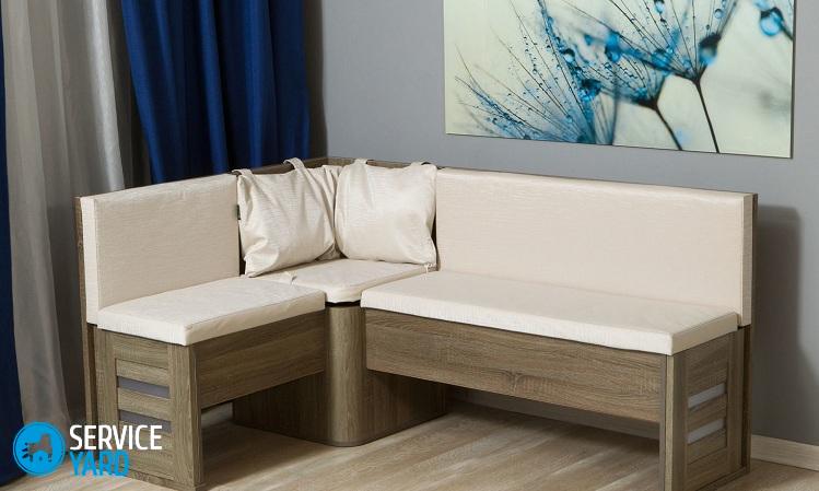 El rincón de la cocina es un sofá en miniatura, que se puede usar para reuniones en la cena, y como una caja para cualquier cosa pequeña. Hay modelos que le permiten organizar rápidamente una litera para un invitado inesperado.