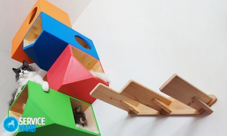 La elección del diseño del producto depende del tamaño del apartamento. Si la habitación es pequeña, entonces 1-2 estantes de pared son suficientes. Si tiene varias pelusas y el área del apartamento lo permite, puede equipar un verdadero mini complejo para el animal.