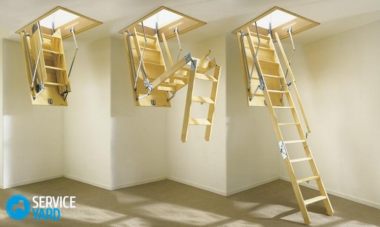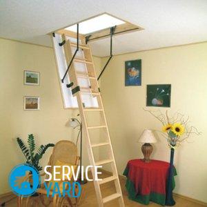 Una escalera plegable al ático con sus propias manos, cuyos dibujos están en Internet en una variedad de variaciones, es muy conveniente. Diseño particularmente exitoso para habitaciones con escotilla, donde la escalera, si es necesario, está oculta en el techo.