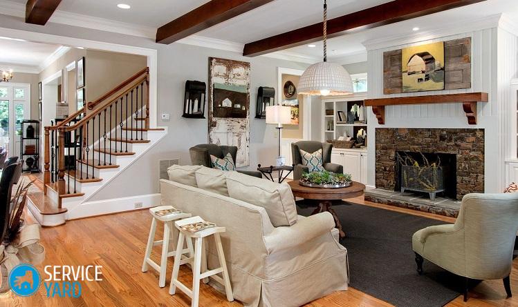 Este estilo, como el japonés, ama la madera, los muebles sencillos y macizos y no agradece la abundancia de la decoración. Una sala de estar de estilo rústico debe tener una chimenea.