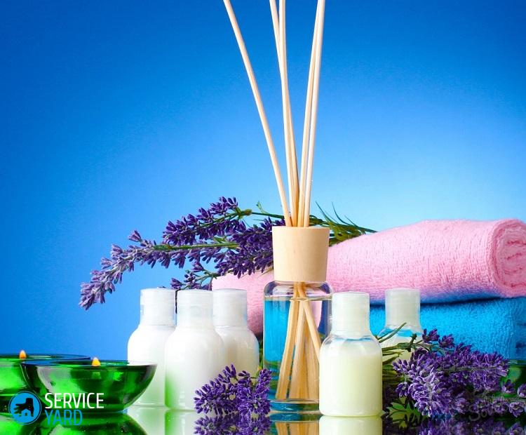 Recientemente, los ambientadores con palos de ratán están ganando cada vez más popularidad entre los consumidores. Dicha herramienta es un conjunto que consiste en un matraz especial con líquido aromático y un conjunto de pajitas. Por lo tanto, el líquido satura el palo de ratán, y eso, a su vez, comienza a exudar un aroma agradable.