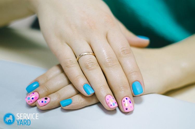 La tecnología de ejecución es habitual, pero antes de aplicar la capa de acabado en las placas de la uña, la lámina se pega al azar.