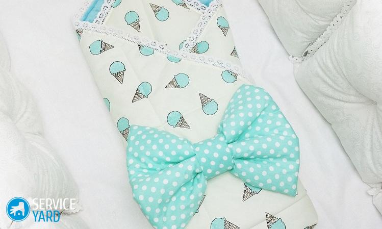 - Funcionalidad y belleza. Si el sobre está destinado a la descarga, debe decorarlo para que la primera ropa sea elegante y festiva. Si planea caminar al aire libre con esta manta, tiene sentido en la parte posterior proporcionar un bolsillo para el colchón.