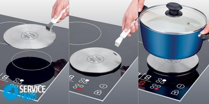 Importante! La placa de inducción puede no encenderse si se colocan platos con un diámetro de menos de 12 cm. Por lo tanto, los amantes de tomar café preparado en un turco deberán obtener un adaptador especial en forma de disco con un mango resistente al calor.