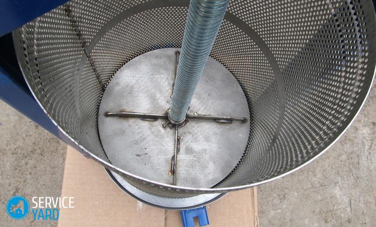 - Para hacer esto, conectamos las tablas con tablas de acero galvanizado e instalamos la canasta en la plataforma, que sirve para drenar el líquido exprimido.