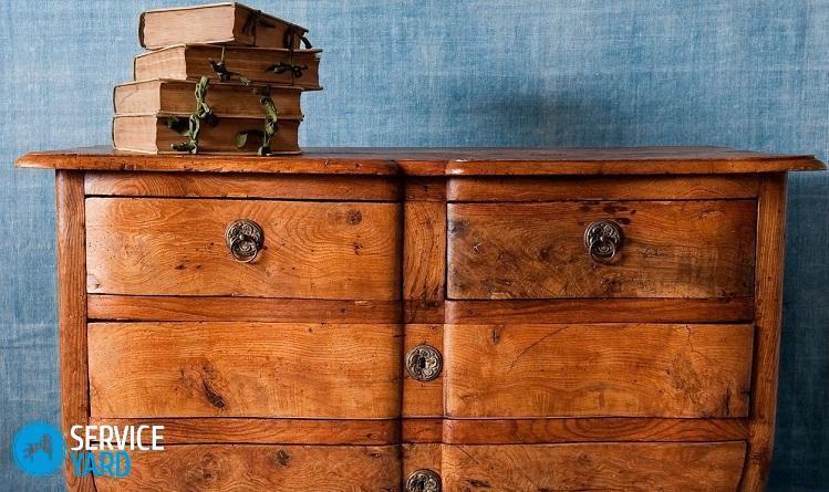 - Retire de la superficie de la cómoda los restos de la capa vieja. Ten cuidado al hacer esto. En primer lugar, existe el riesgo de dañar la decoración. En segundo lugar, es imposible que las partículas de recubrimiento se acumulen en ranuras y esquinas difíciles de alcanzar.