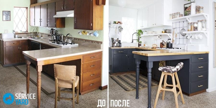 Por supuesto, si necesita reemplazar los elementos funcionales de los muebles, es mejor confiar este trabajo a especialistas, y usted mismo puede realizar trabajos de restauración simples. En este caso, la actualización de la cocina se puede realizar de las siguientes maneras: