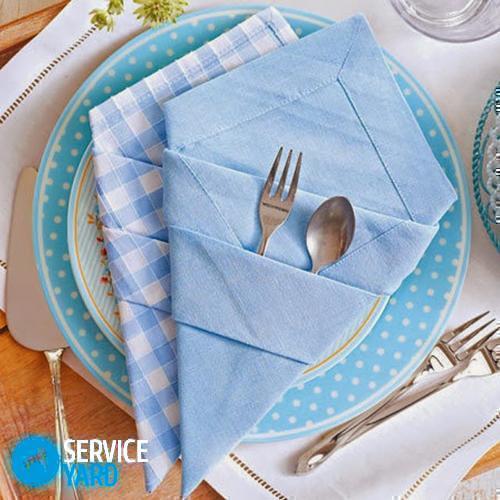 Para una reunión de negocios o familiar, una excelente opción es doblar las servilletas en forma de sobre y poner cubiertos en ella. Para hacer esto: