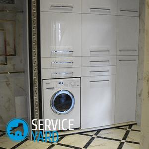Por supuesto, la lavadora se puede instalar no solo en el baño, sino también en la cocina e incluso en el pasillo. Pero el lugar donde van las redes de comunicación es más lógico. Además, con la ayuda del gabinete puede cerrar las áreas problemáticas, por ejemplo, el lugar del cableado de la tubería.