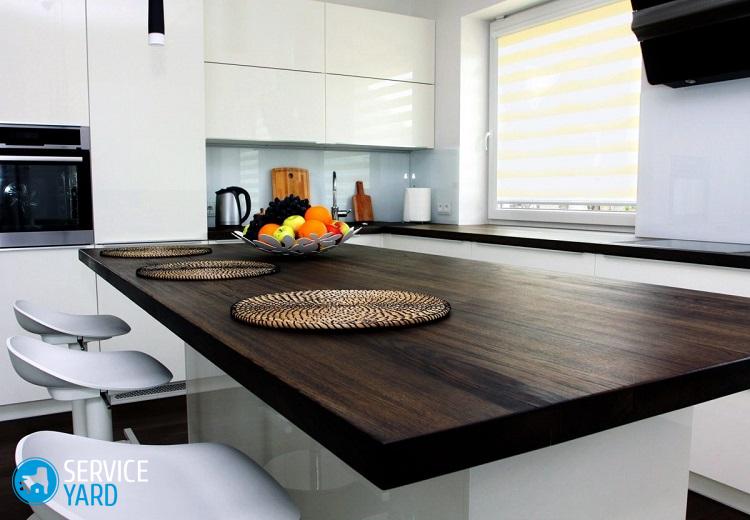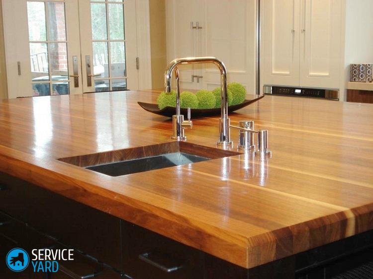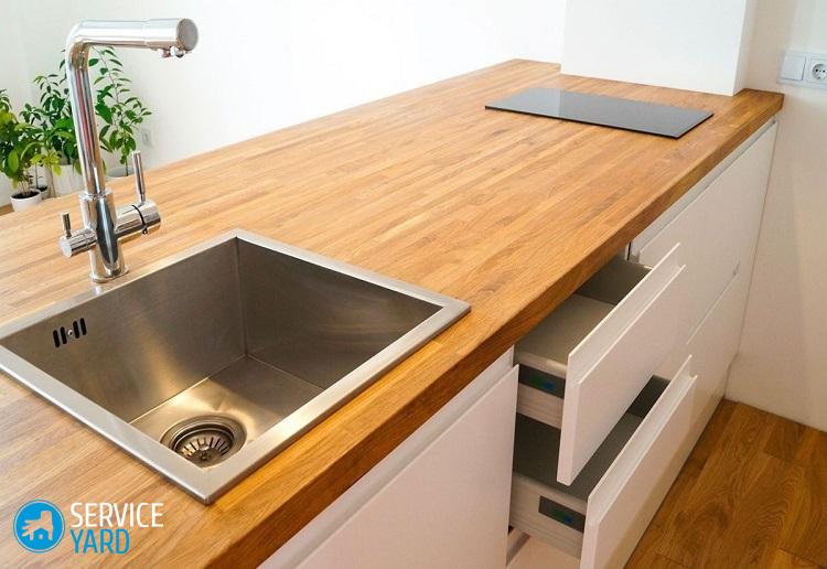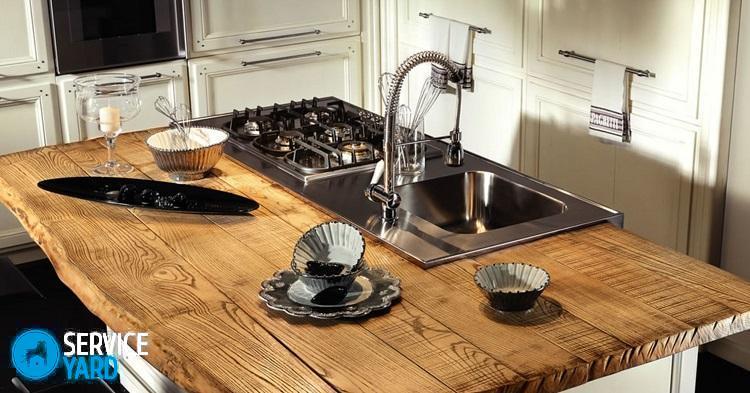 Al aceptar una superficie de trabajo de madera en la cocina, olvídate del aglomerado, el MDF y la chapa. ¡Solo madera natural! Y no se trata de daños, sino de las propiedades del material. La superficie de la cocina está sometida a un uso agresivo todos los días: cortar, desmoronar, rociar, azotar, derramar; todo esto es natural para la cocina. El avión debe ser liso, fuerte, resistente a cortes, temperaturas, humedad.