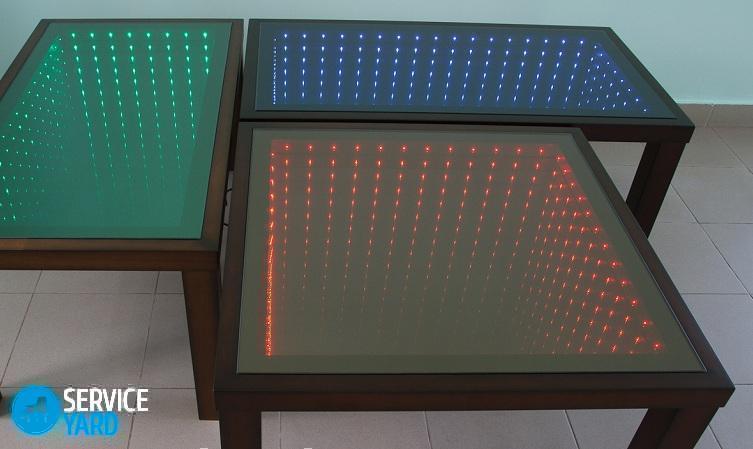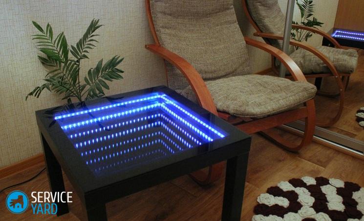 - Antes de comenzar a armar una mesa de café del infinito con sus propias manos, debe pensar dónde habrá elementos eléctricos que afecten la calidad de la luz de fondo y creen el efecto deseado.