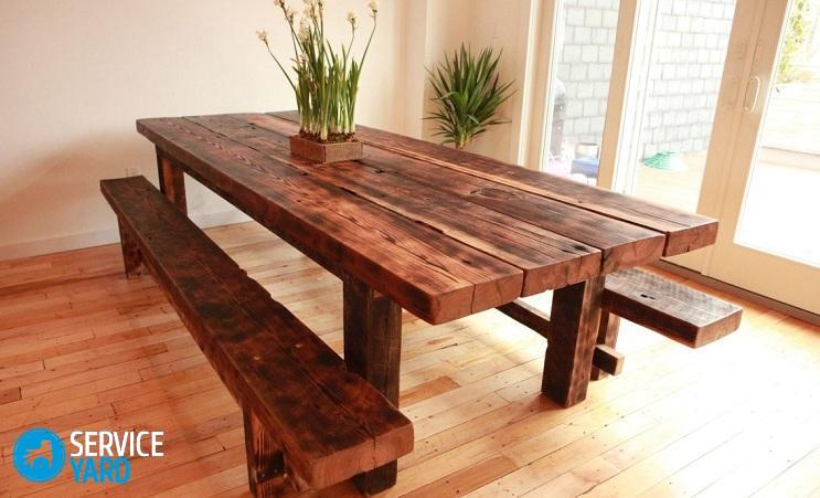 - Una mesa de madera en la cocina con sus propias manos no debe estar hecha de rocas blandas. Es mejor abandonar inmediatamente la acacia y el álamo.