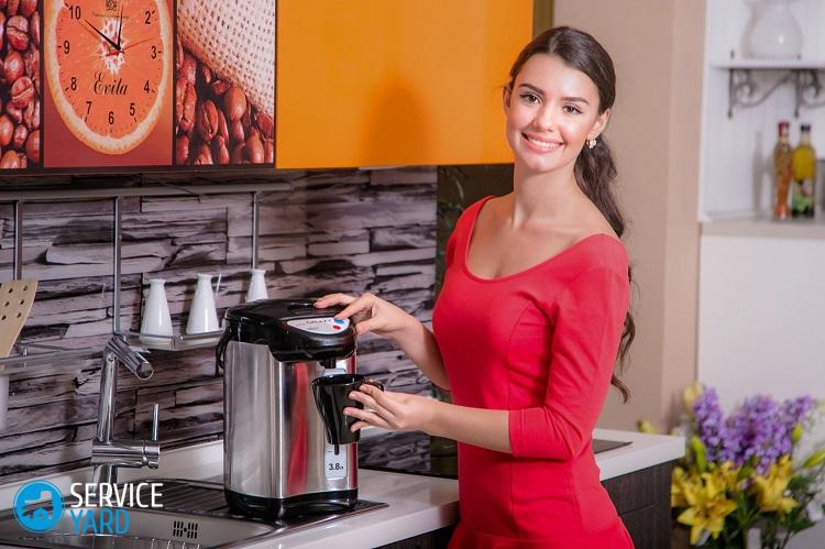 Importante! La principal diferencia entre el sudor térmico y el hervidor de agua es que este tipo de equipo se puede dejar con seguridad con niños pequeños. Podrán beber té solos, sin lastimarse. Esto se debe al hecho de que, a diferencia de una tetera, no es necesario inclinar la olla y el agua se suministra a través de una válvula especialmente asignada para estos fines.