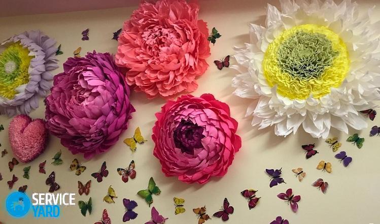 En esta sección, consideraremos algunos de los ejemplos más simples e interesantes de cómo hacer flores de papel en la pared utilizando la cantidad mínima de materiales y herramientas improvisados.