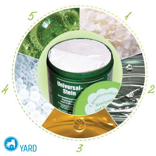Una de las razones por las que el detergente universal “Universal Stone” tiene una gran demanda en comparación con los productos claramente químicos es su composición natural. Incluye 5 componentes: