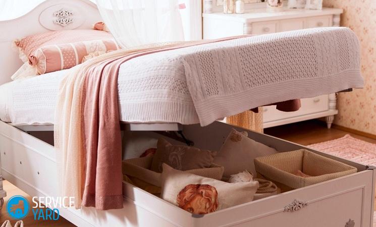 - Ahorrar espacio en el dormitorio es lo que cautiva a muchos consumidores. Puede deshacerse de gabinetes y estantes adicionales en el salón. Todas las sábanas, mantas e incluso colchones se pueden ocultar sin ningún problema.