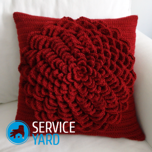 - Una almohada de puf, que yace en el suelo, es recomendable tejer con hilos sintéticos, que se eliminan fácilmente de la contaminación, no se desgastan y mantienen un aspecto nuevo y hermoso durante mucho tiempo.