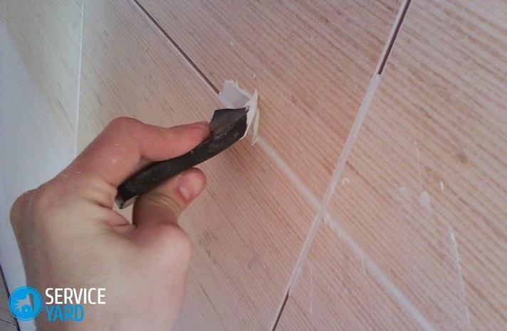 - Para que las costuras sean uniformes y hermosas, primero limpiamos los azulejos de escombros y cruces divisorias. Para hacer esto, puede envolver un cuchillo o destornillador con un trapo y limpiar todas las articulaciones. Trabaja con cuidado para no picar azulejos frescos.