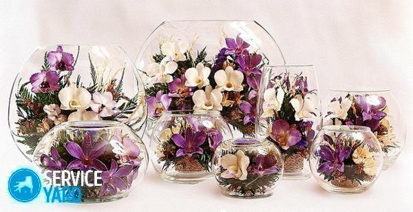 Para admirar las flores colocadas en un recipiente de vidrio, no es necesario embalsamarlas o secarlas. Puedes hacer un florario. Una decoración similar creada de manera competente puede convertirse en una "obra de arte", la composición central de la habitación. Flores frescas de bricolaje en vidrio No es difícil de hacer.