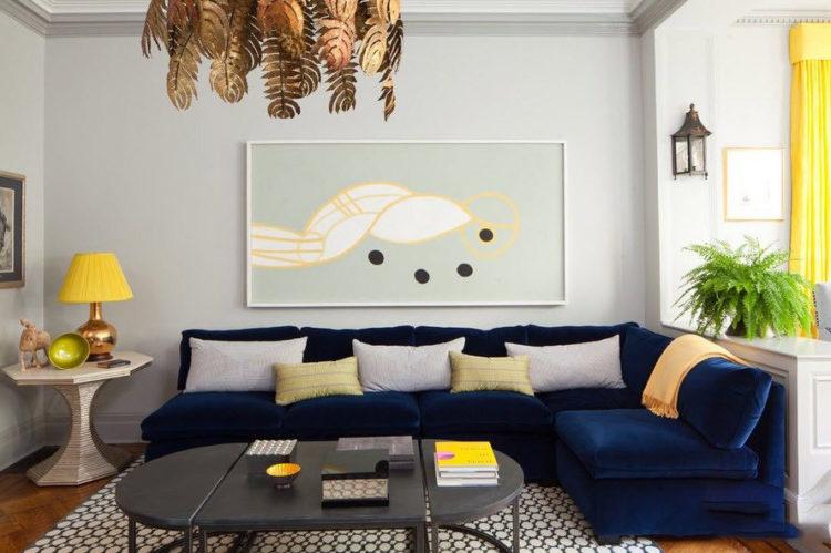A los diseñadores les gusta trabajar con azul, realizando el diseño de la sala (ver foto a continuación), considerando que es uno de los mejores, ya que es ideal para varios estilos y combina bien con otros colores. Preste atención a lo brillante que se ve la habitación azul (foto a continuación), amueblada con muebles claros.