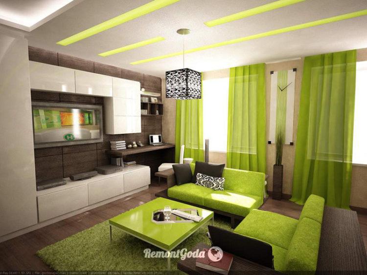 La sala verde y el interior crean una sensación de frescura y brillo. La combinación de colores del verde le ofrece una gran cantidad de tonos que ayudan a crear un área elegante para recibir invitados. El diseño de la sala requiere especial atención y combinación con otros tonos.