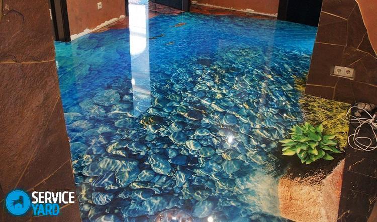 Entonces, descubramos qué es un piso con efecto 3D. La base del piso vertido puede estar hecha de cemento, polímeros o epoxi. Queremos señalar que la mezcla de polímeros tiene un alto grado de resistencia, resistencia al desgaste y versatilidad de uso. Dicha cobertura será de la más alta calidad, por lo que deberá pagar una cantidad considerable de dinero. No seremos detallados, sino que simplemente enumeremos las ventajas y desventajas de los pisos 3d.