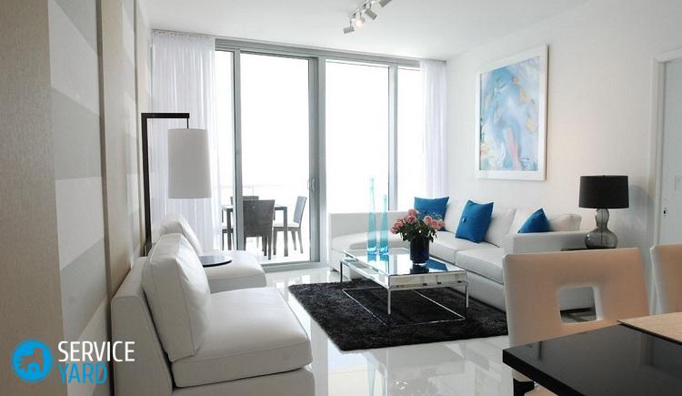 al contenido ↑Importante! Se ve muy elegante cuando el techo, las paredes y el piso están decorados con materiales blancos, y se pone un acento brillante en algún objeto grande, por ejemplo, un sofá rojo ubicado en el centro de la habitación. El tono neutral puede ser el resto de los muebles.
