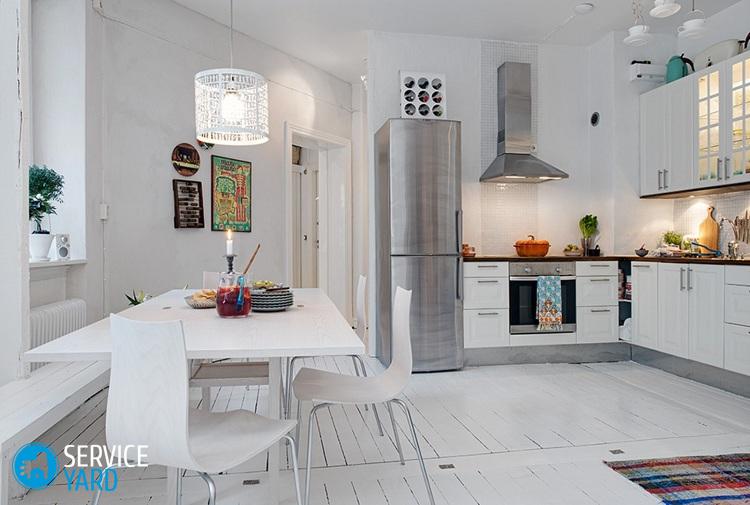 La mejor opción para la cocina será el color de aliso blanqueado o roble. Recomendamos usar azulejos de porcelana o azulejos brillantes.