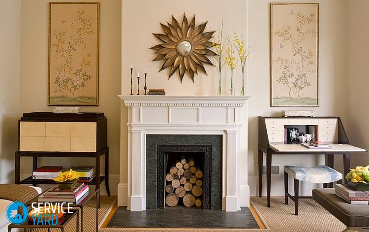- Condicional Tales chimeneas falsas tienen un portal que sobresale de la pared. Se pueden equipar y cambiar según su gusto, aspecto y deseo. La leña a menudo se coloca en el orificio del horno o las velas se colocan allí.