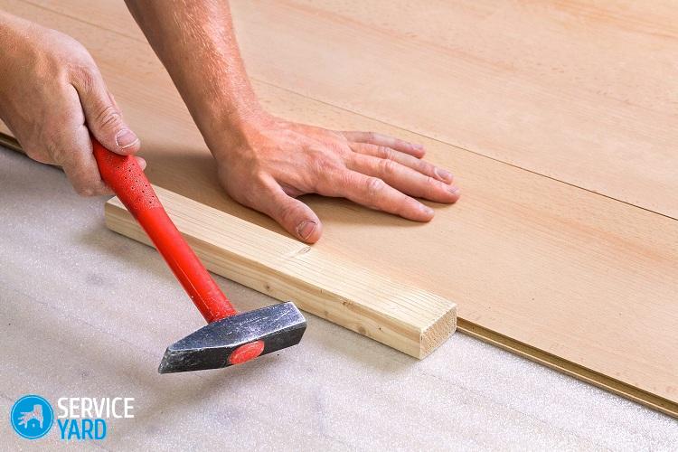 al contenido ↑Importante! Sucede que no hay una barra de apisonamiento a la mano. Nunca martille las cerraduras laminadas con un martillo para no dañarlas. Use una pieza innecesaria de una de las tablas, acople las cerraduras y golpee con cuidado las baldosas laminadas.