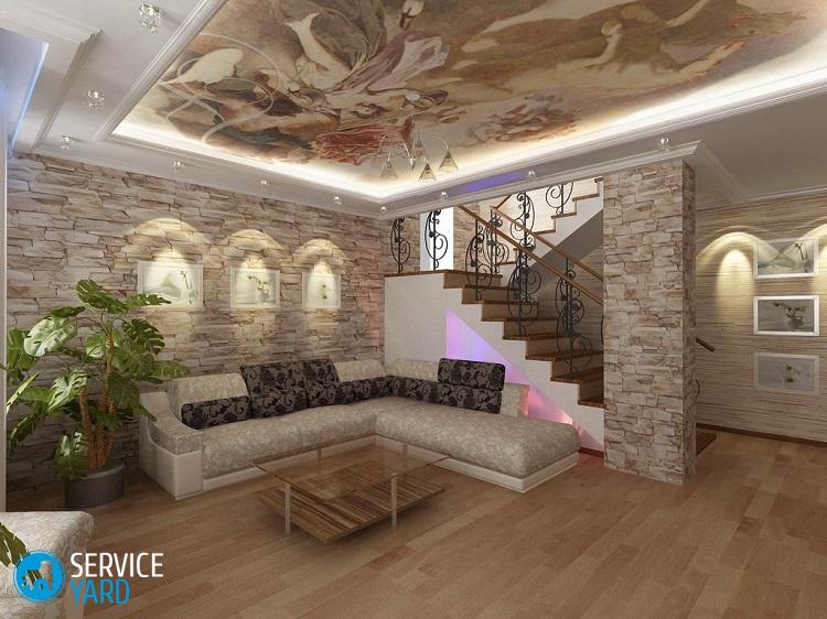 Importante! Para que su habitación no se convierta en una cripta de piedra, los expertos recomiendan resaltar las áreas con dicho revestimiento. Especialmente interesantes y espectaculares se verán las lámparas antiguas.