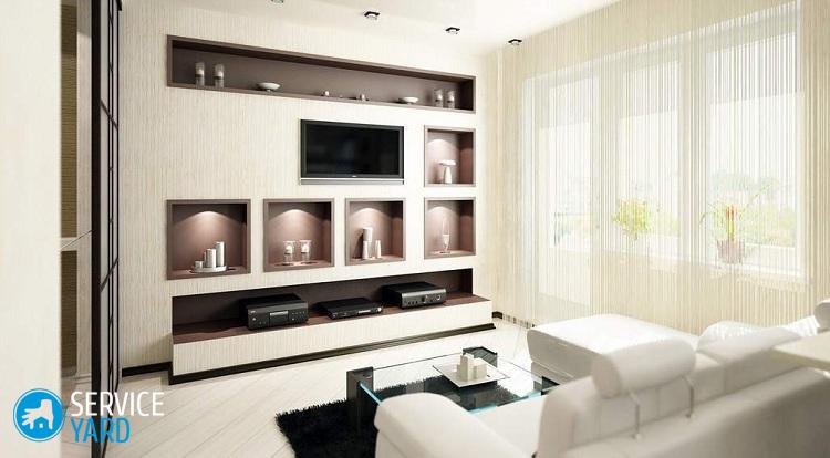 - La profundidad de su futuro nicho en la pared de paneles de yeso para instalar un televisor será igual al grosor de este televisor, más unos pocos centímetros que serán necesarios para tender cables y enchufes. Además, el espacio debe calcularse de modo que la pantalla esté en el mismo plano con la superficie del nicho.