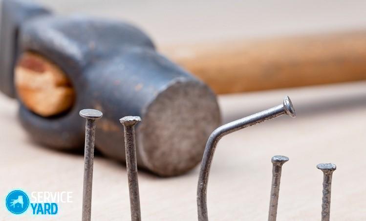 Importante! Tenga en cuenta que sus acciones no tan seguras pueden hacer que la barra se doble. Esto es extremadamente inconveniente, y siempre surge la pregunta de qué hacer en este caso. Por supuesto, puede doblar la uña e intentar martillarla nuevamente, pero no se sorprenda si se dobla nuevamente en el mismo lugar o incluso se rompe. Desafortunadamente, el metal de alta calidad no siempre se usa para la fabricación de sujetadores, lo que causa problemas similares. Todavía hay una salida: conducir en un clavo, como está, es decir, en una forma doblada. Pero este método no siempre es adecuado.