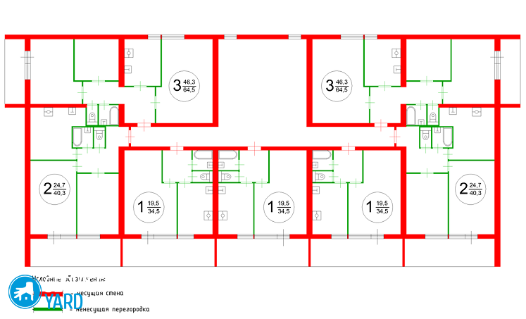 En la mayoría de los casos, solo se colocan particiones dentro del apartamento, pero no puede estar completamente seguro de esto: en las viviendas grandes, los muros de carga también pueden estar dentro. Puede distinguir un muro de carga de una partición, por ejemplo, por dimensiones: