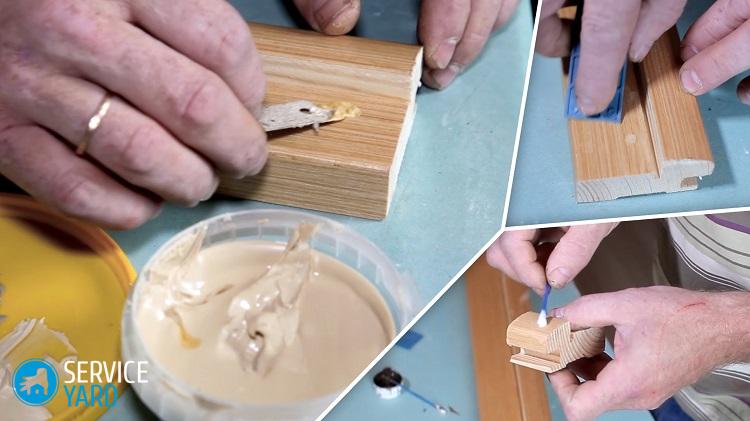 - Si sus muebles han formado grandes espacios entre las partes, entonces debe optar por una composición de dos componentes. Después del endurecimiento, la superficie puede tratarse con papel de lija y los restos de restauración serán invisibles.