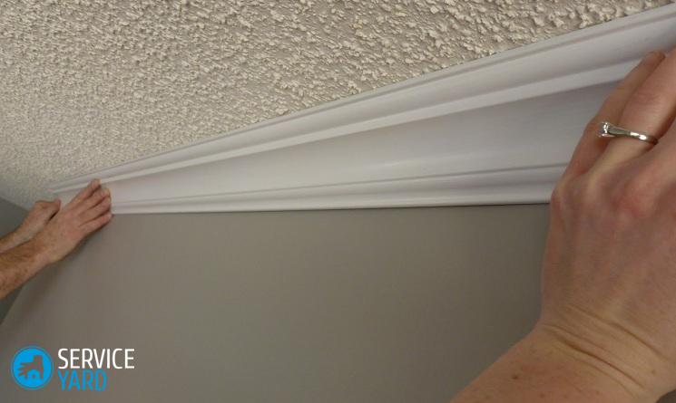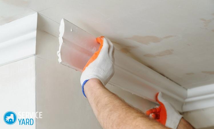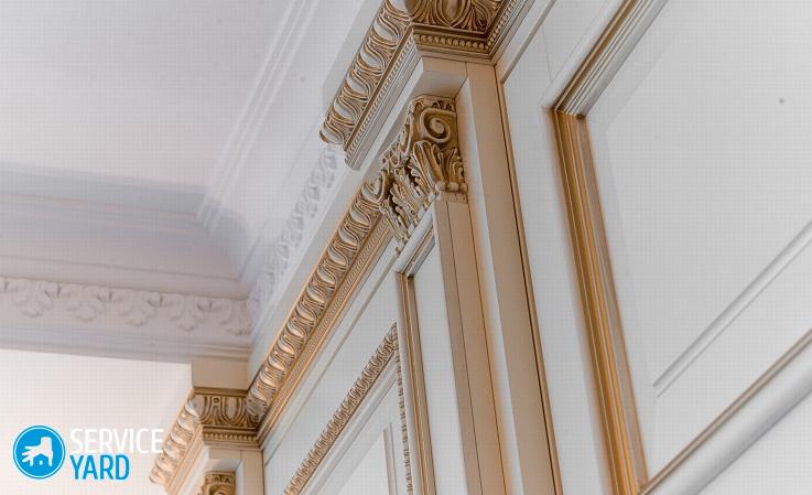 - En la mayoría de los casos, los filetes de yeso o poliestireno se pegan a la solución de masilla, también cubre los espacios entre los zócalos, el techo y la pared.