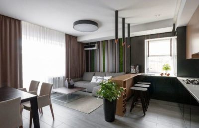 Aprenderá sobre las diferentes opciones de diseño para la cocina-sala de estar. Mire la foto con la imagen de varias soluciones de diseño de estudios similares realizados en diferentes colores y tonos.